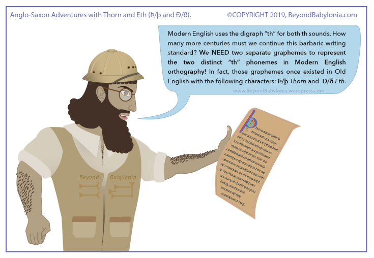 Specific to the Thorn and the Eth, is that I believe if we would revive them into the Modern English writing system, it may prove to be a useful learning tool for those just starting to learn English. It would also be beneficial, because . . . who doesn’t like consistency in language?