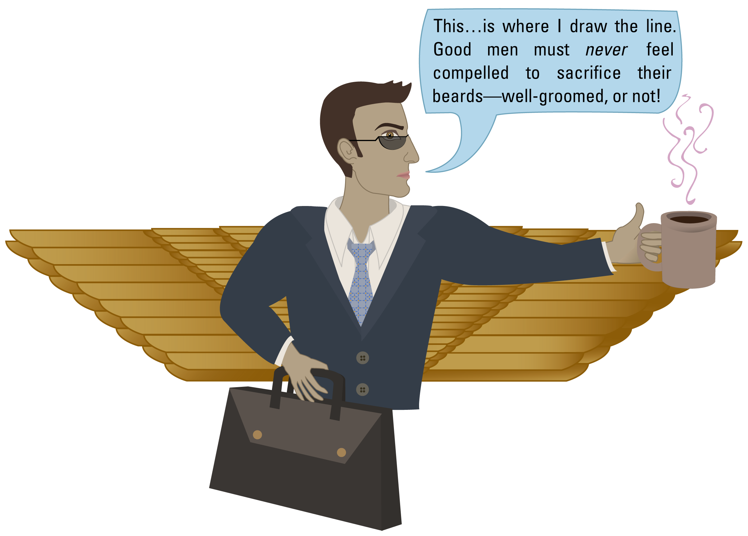 In many Assyrian seals and reliefs, the god Ashur, is represented as an archer posed in a similar manner to my caricature…but he holds a bow and arrow, rather than steel artillery (retired version) or a pen (current version). It was necessary to reform my illustration a bit, to be fit for the future. The fear factor in him is only meant to intimidate opponents. Oh, and he is always fabulous.